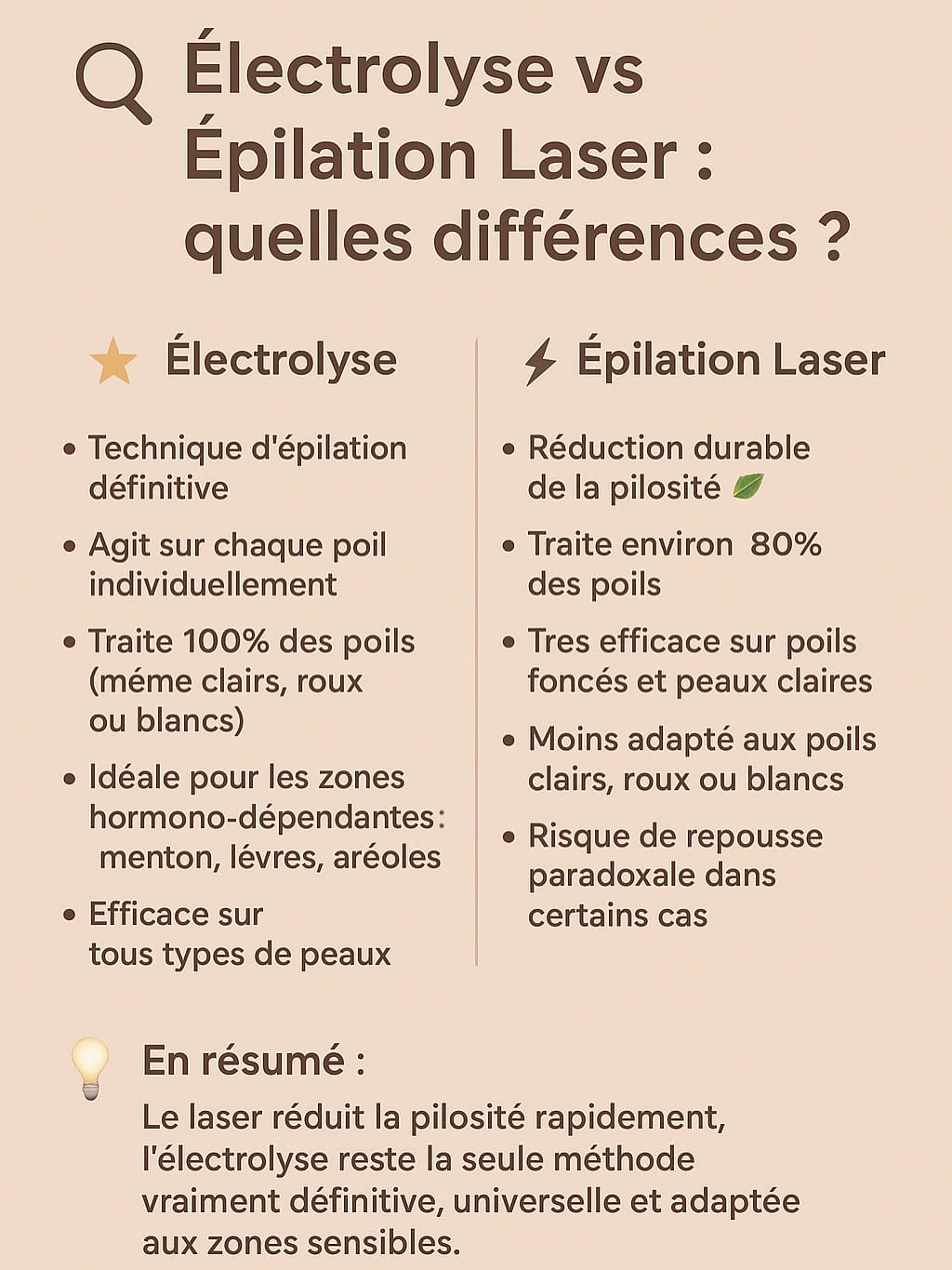 C’est la seule technique reconnue comme 100% définitive, efficace sur tout types de poils et toutes couleur de peau.
