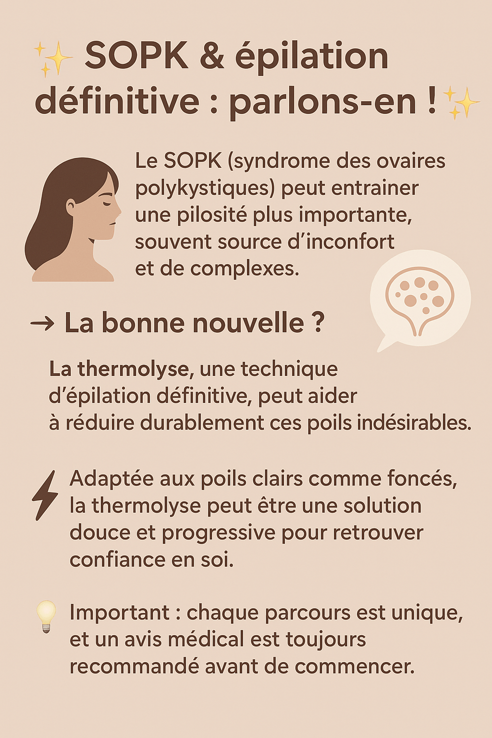La pilosité est donc un phénomène biologique naturel, dont l’expression diffère d’une personne à l’autre. Sa compréhension est essentielle pour adapter efficacement toute démarche d’épilation ou de traitement définitif.